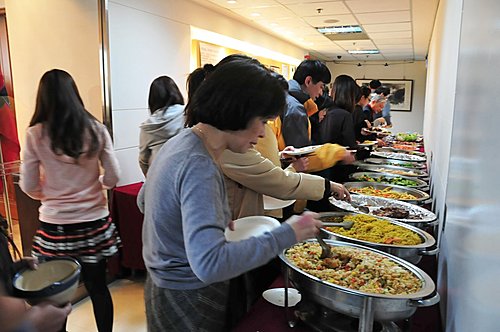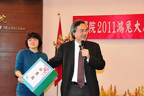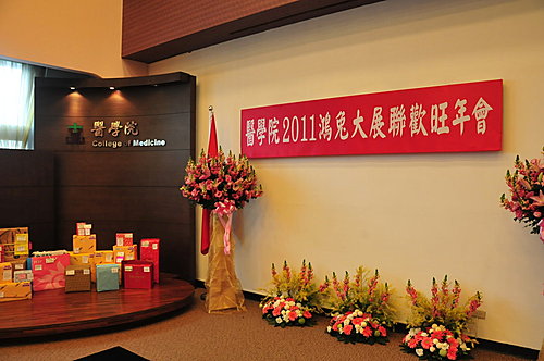 醫學院的舉辦第七年忘年會,運用中午時光以自助餐方式與同仁抽獎同樂,今年的獎項不少,氣氛相當熱鬧,來參加的同仁幾乎都留到最後,看到平常忙碌的同仁紛紛抽空來同歡,他們臉上熱絡的笑容,輕鬆自在的神情,讓我感到非十分欣慰。