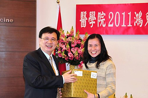 醫學院特別獎現金五千元,由藥理學科蔡妍菊教授(灰衣)抽到,但蔡教授大方捐出,再由生理學科阮淑慧副教授獲得。
