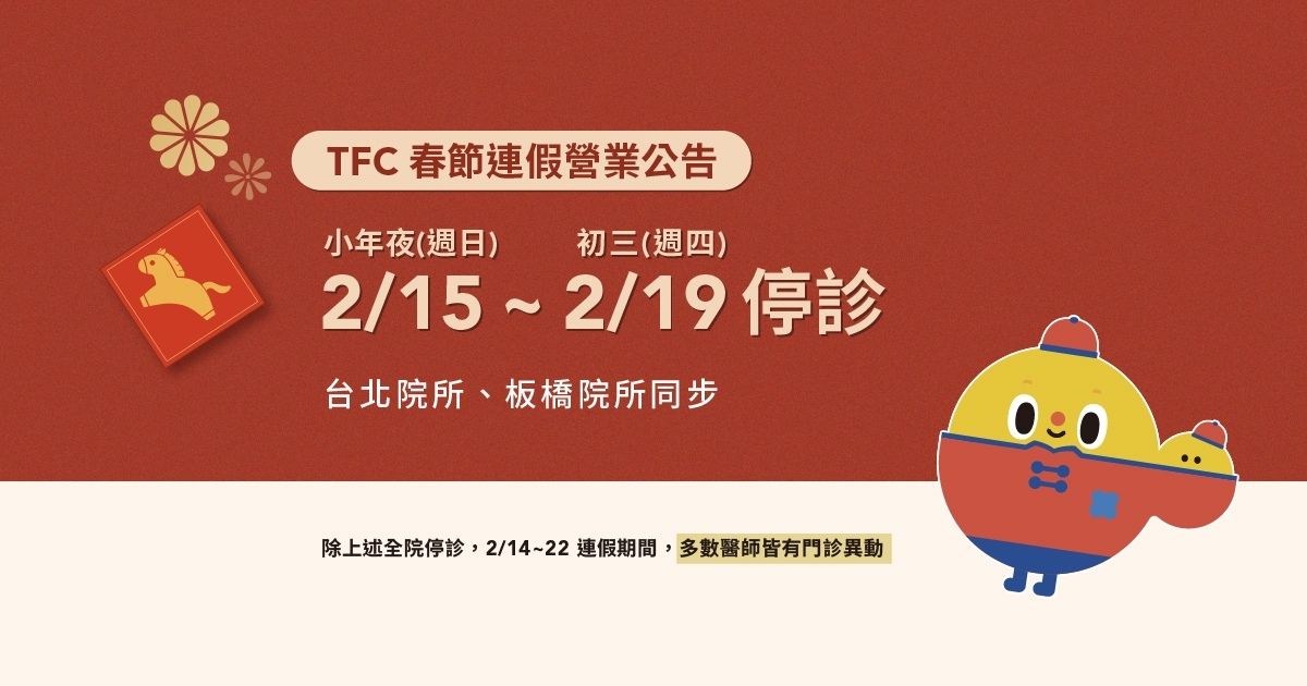 2/15~2/19所有醫師暫停看診,請大家提早安排好看診與諮詢時間。
