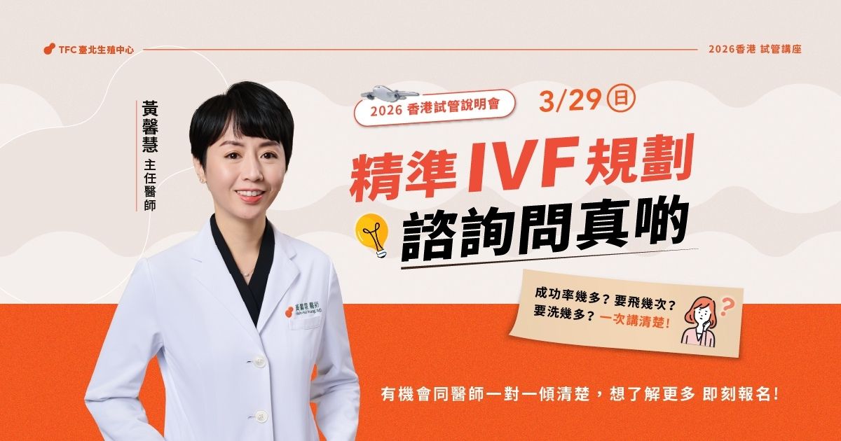 這一次,我們邀請擁有豐富臨床經驗的 黃馨慧主任醫師 親自來港,透過實體說明會,從「女性個人化角度」出發,陪你一步步釐清適合自己的 IVF 療程規劃方向。