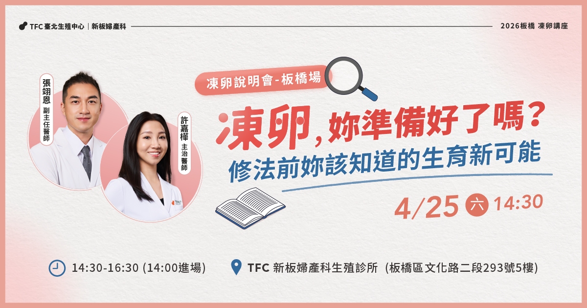 講座地點:TFC 新板婦產科診所生殖中心(新北市板橋區文化路二段 293 號 5 樓)