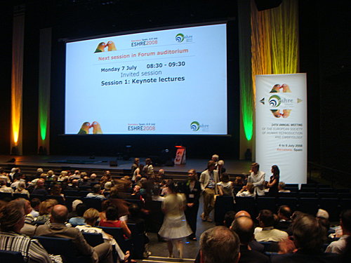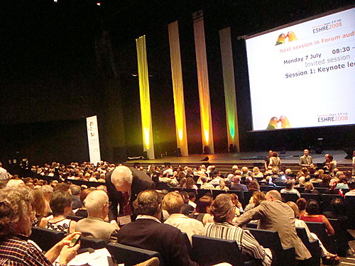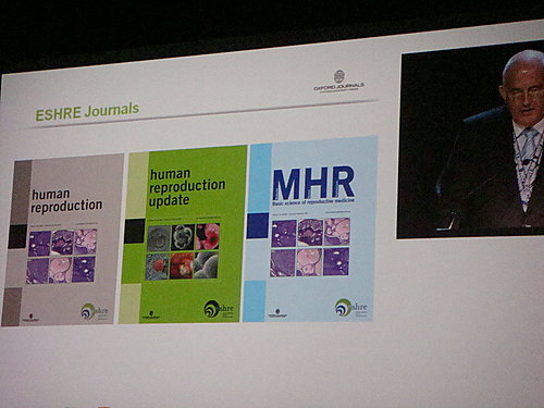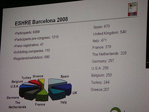 大會主席介紹本次開會人數,會員分布國家以及一年內ESHRE的大事。