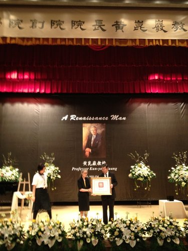 (2012三月29日的追思會中蕭萬長副總統頒發總統褒揚令由黃崑巖院長夫人謝惠美醫師接受)