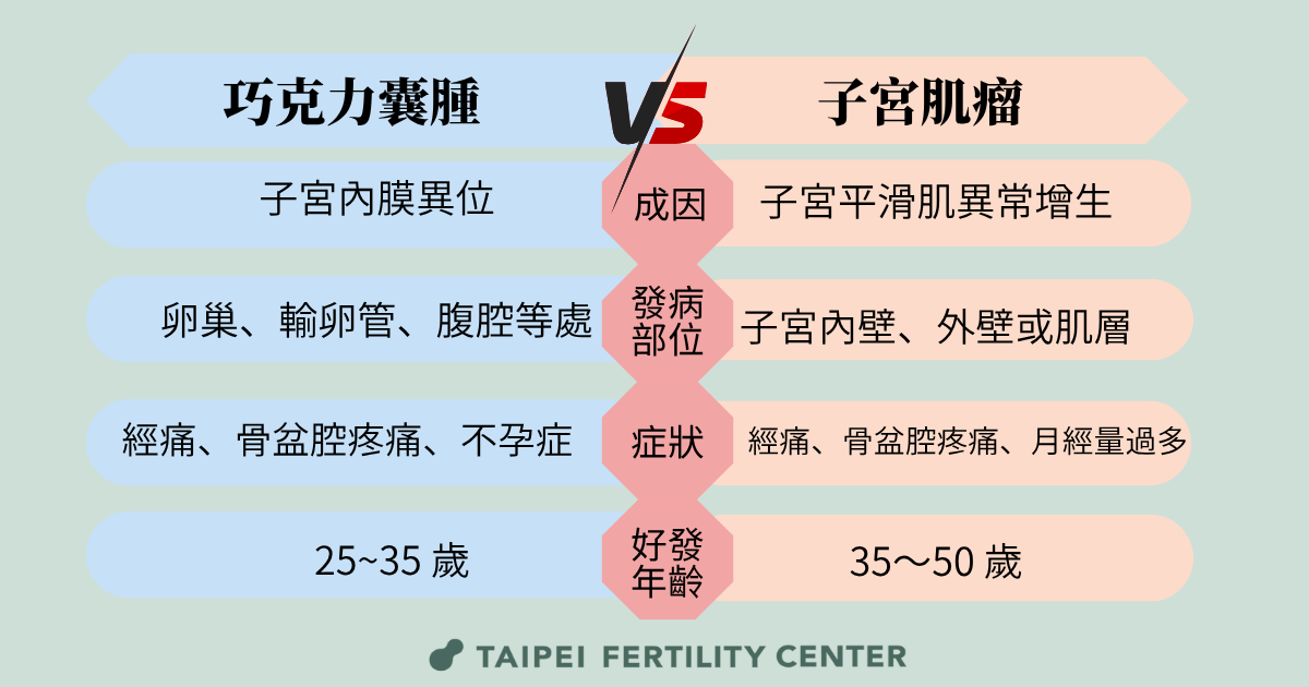 巧克力囊腫 是什麼?巧克力囊腫與子宮肌瘤經常被混為一談。然而,這兩者雖然都會影響女性的健康與生活,但它們的成因、病兆位置與症狀有所不同。以下詳細說明兩者差異: