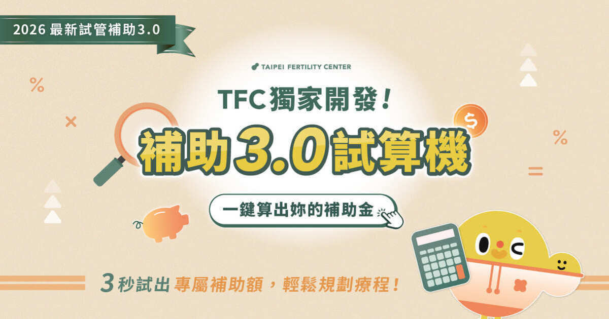 TFC獨家推出「試管嬰兒補助3.0計算機」,讓妳輸入年齡與療程資訊,就能立即知道可領多少補助金!點點手指,立即獲得試管嬰兒(IVF)補助攻略 https://tfckelly.golive.business/